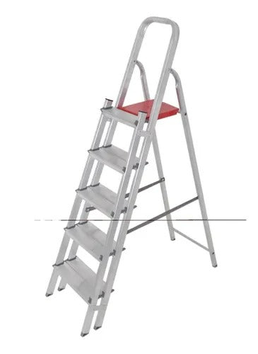 Esta escada doméstica de alumínio com 5 degraus é ideal para uso residencial e profissional leve. Fabricada em alumínio reforçado, oferece excelente estabilidade, durabilidade e leveza. Os degraus possuem superfície antiderrapante, garantindo segurança durante o uso.