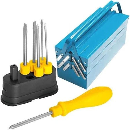 Jogo de Chave de Fenda Phillips 6 Peças com Caixa de Ferramentas 5 Gavetas tramontina